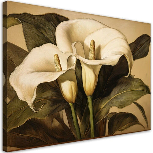 Lerretsbilde, Hvite Callaea-blomster i sepia