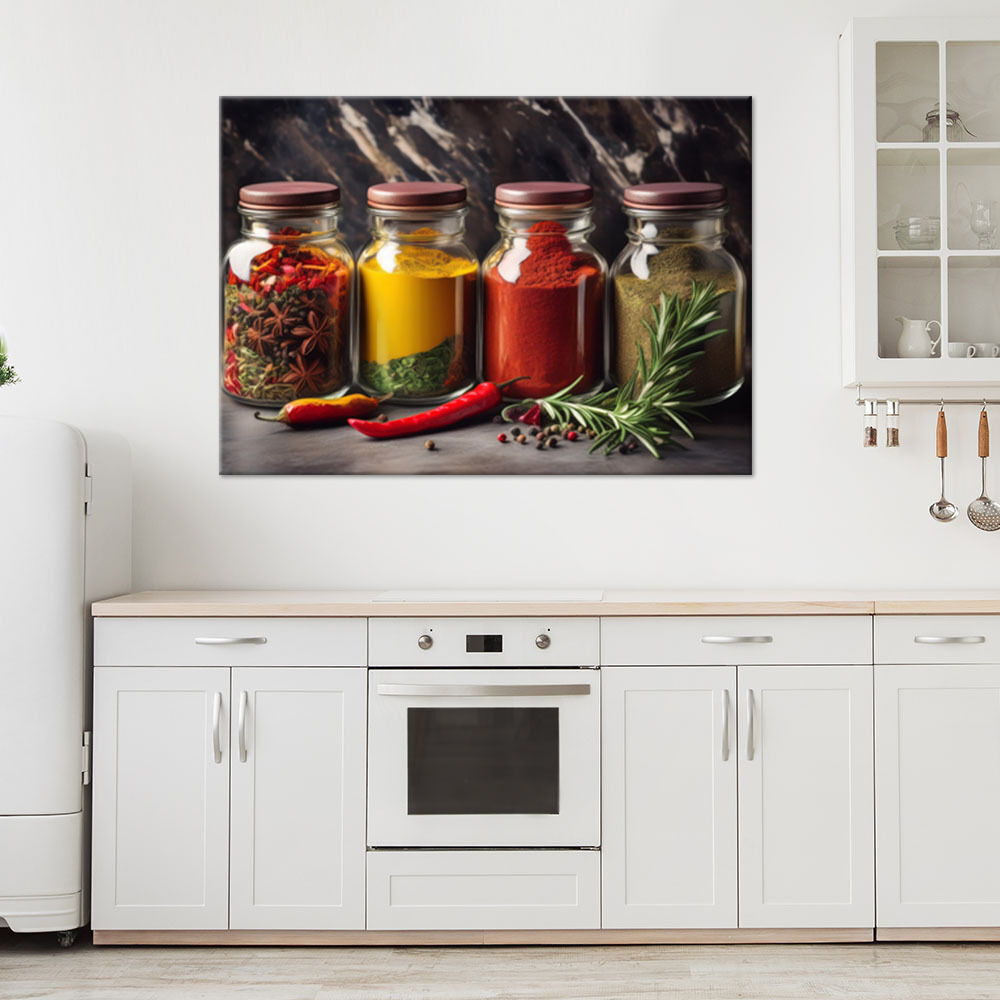 Lerretsbilde, Krydder i krukker til kjøkkenet