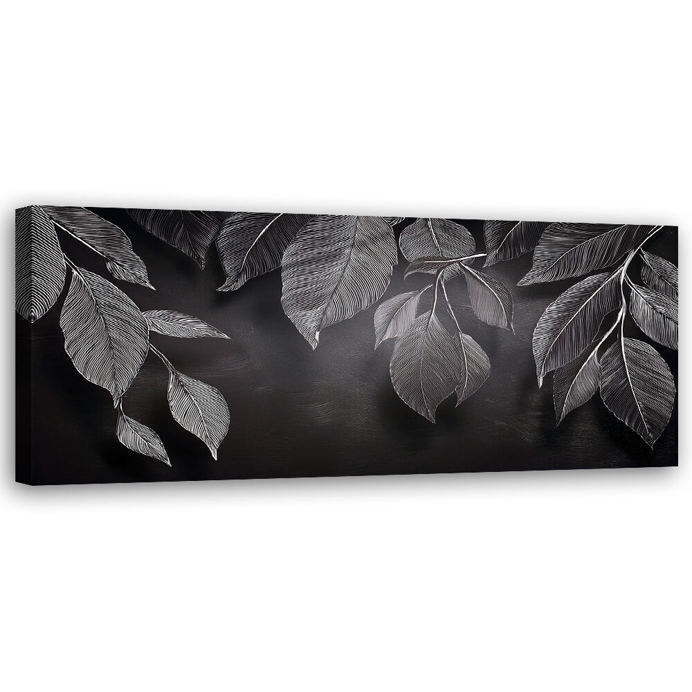 Lerretsbilde, Minimalisme etterlater planter svart og hvitt - (120x40)
