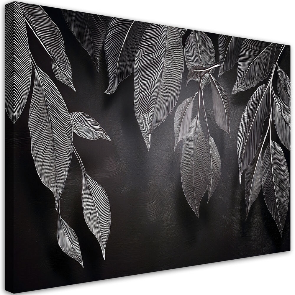 Lerretsbilde, Minimalisme etterlater planter svart og hvitt - (100x70)