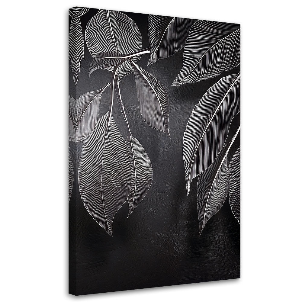 Lerretsbilde, Minimalisme etterlater planter svart og hvitt - (70x100)