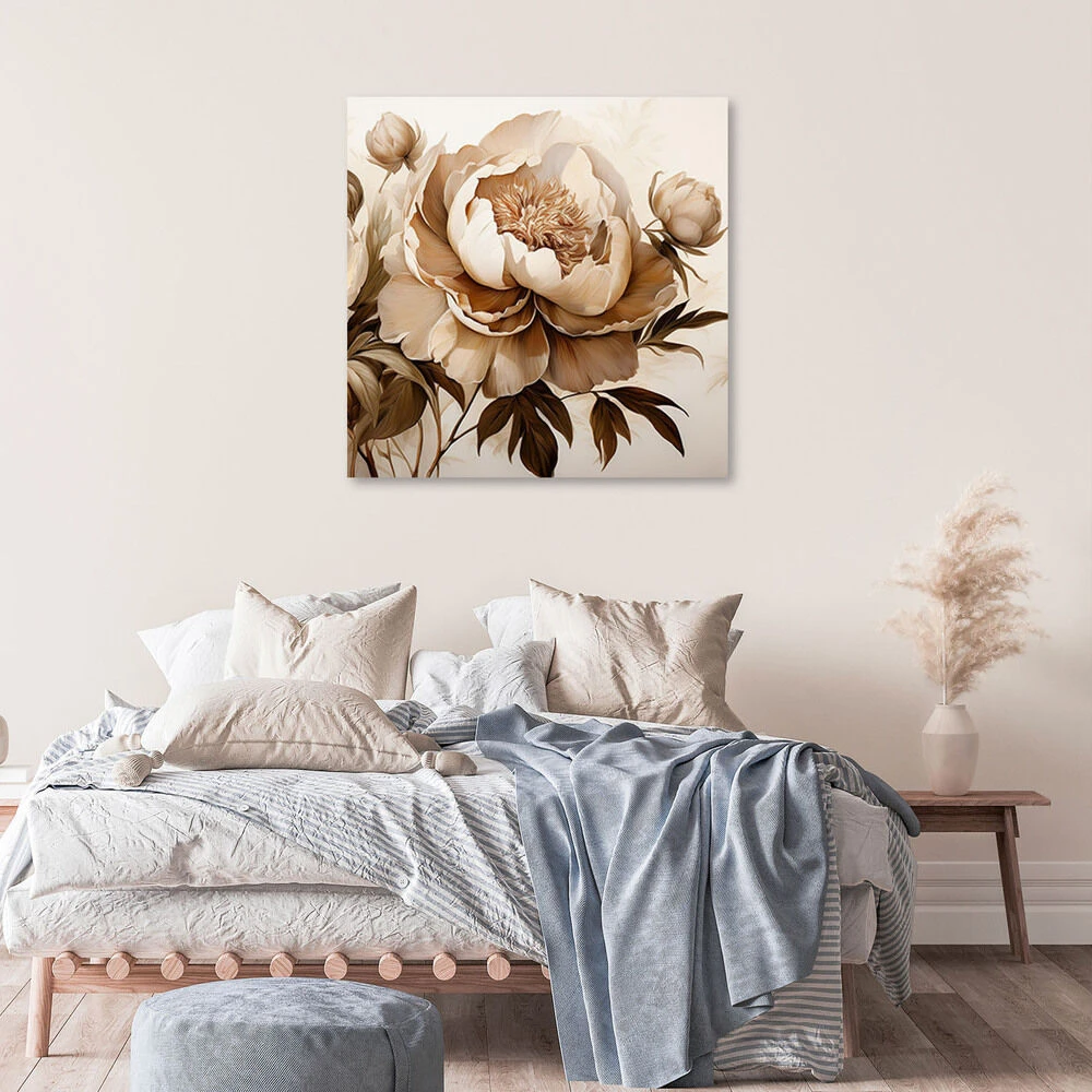 Lerretsbilde, Peoner Peoner Blomster i beige